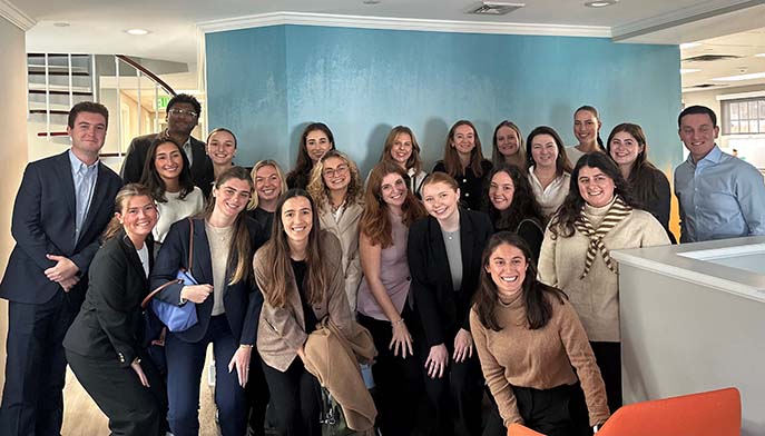 The Dolan Career Development Center (DCDC) recently organized site visits to industry leaders like MLB, Merrill Lynch, Wells Fargo, Horizon Media, and Prosek Partners, giving students the opportunity to network with professionals, connect with alumni, and gain firsthand insight into potential career paths.